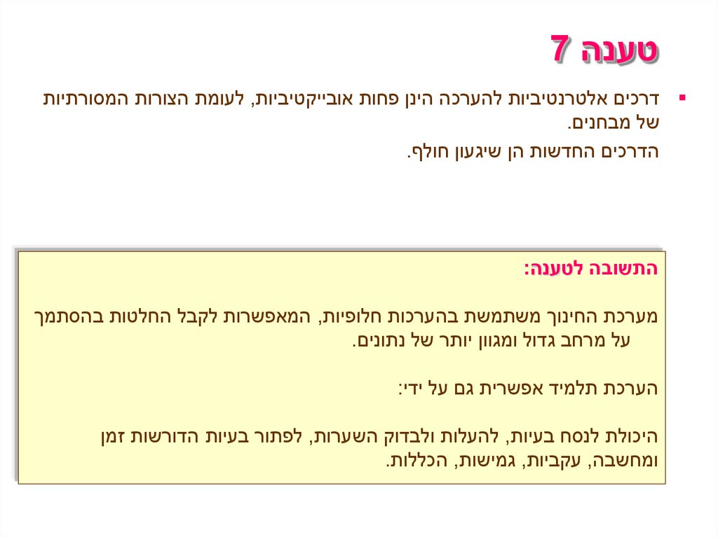 טענה 7 דרכים אלטרנטיביות להערכה הינן פחות אובייקטיביות ,לעומת הצורות המסורתיות