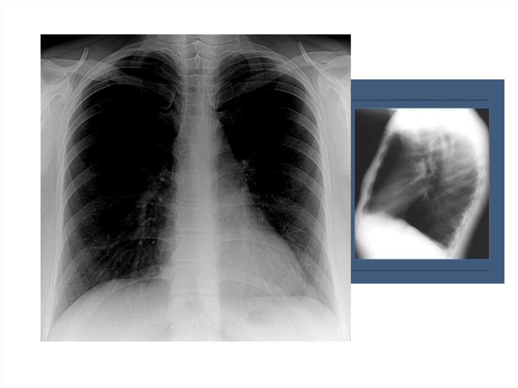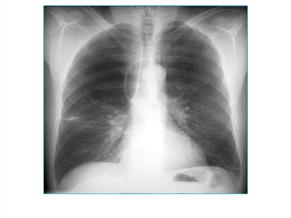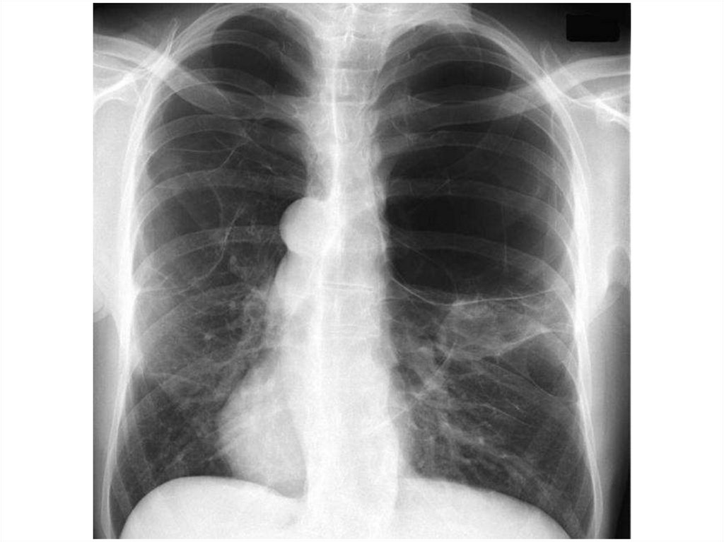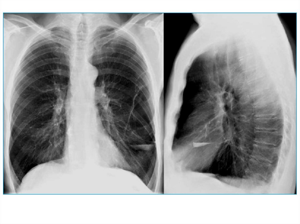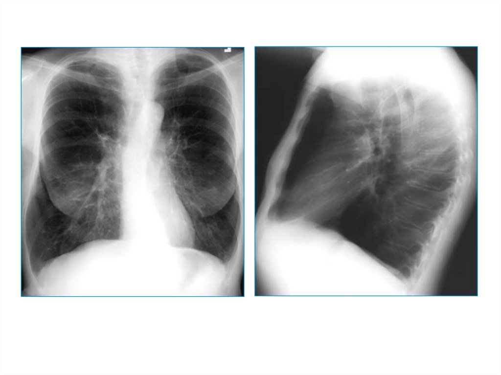 Эмфизема легких – признаки:• увеличенные легочные поля