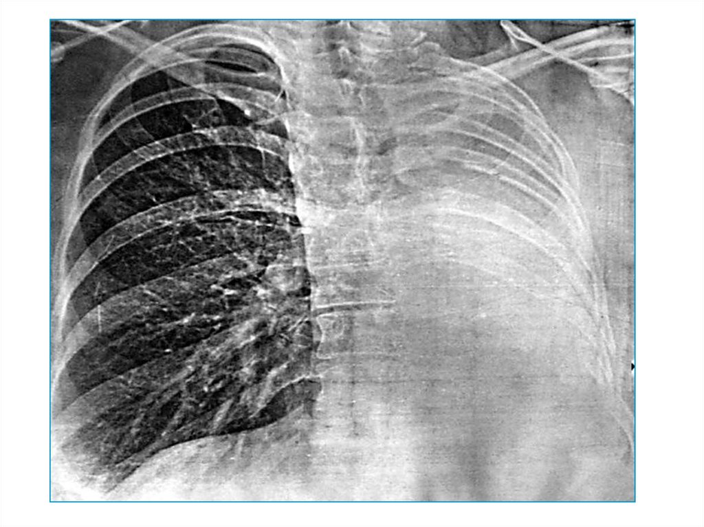 В случае ателектаза/удаления другого легкого.Видимая картина – тотальное односторнее