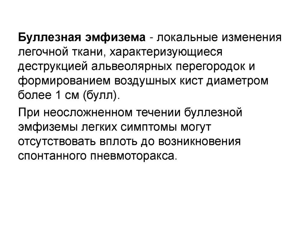Буллезная эмфизема - локальные изменениялегочной ткани, характеризующиеся
