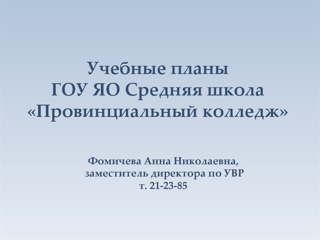 Учебные планы ГОУ ЯО Средняя школа «Провинциальный колледж»