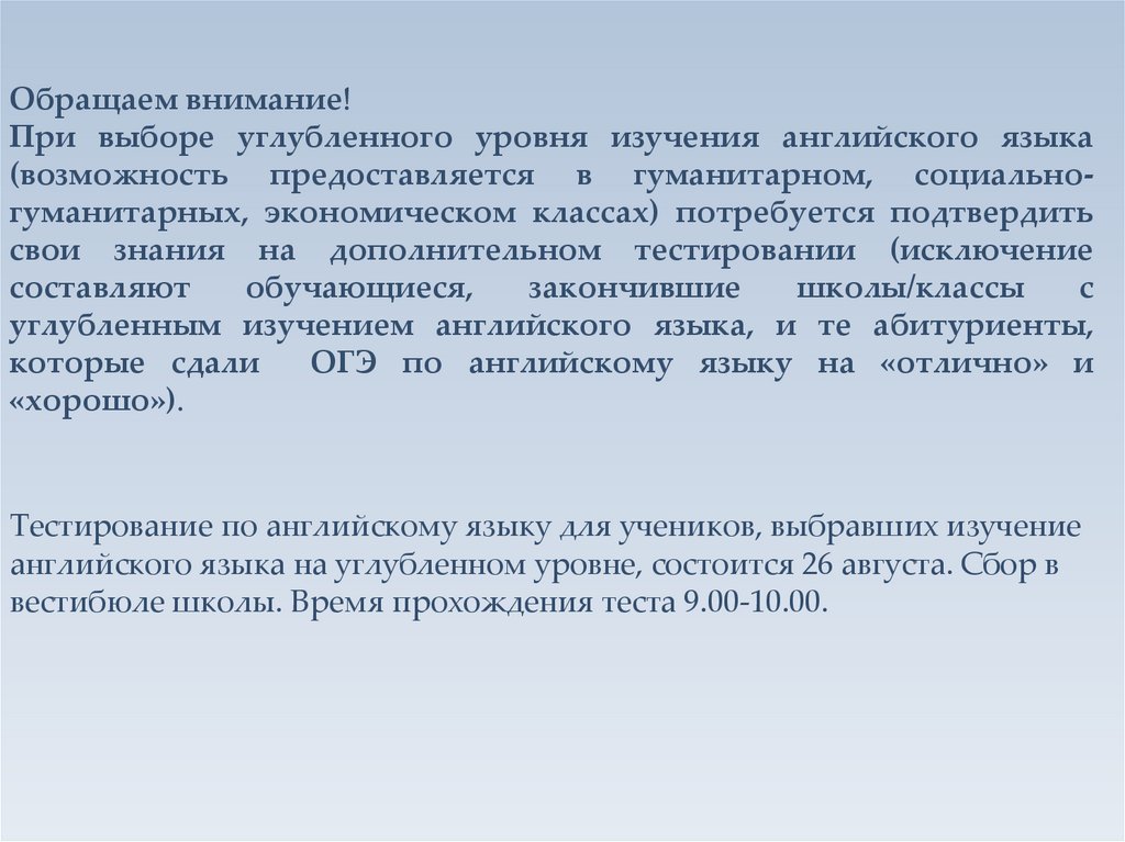 Обращаем внимание!При выборе углубленного уровня изучения английского языка