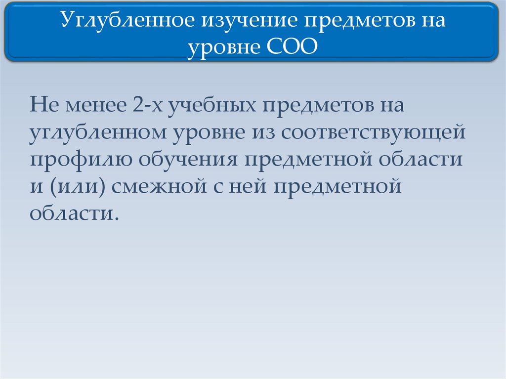 Не менее 2-х учебных предметов науглубленном уровне из соответствующей