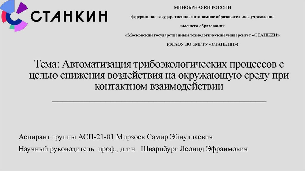 (ФГАОУ ВО «МГТУ «СТАНКИН»)