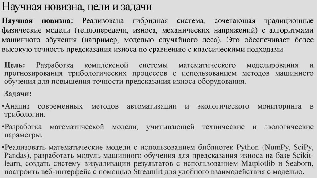 Научная новизна, цели и задачиНаучная новизна: Реализована гибридная система, сочетающая традиционные
