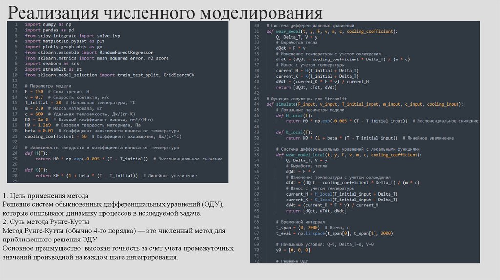 NumPy и Pandas — для численных вычислений и обработки данных.SciPy — для решения дифференциальных уравнений и оптимизации.