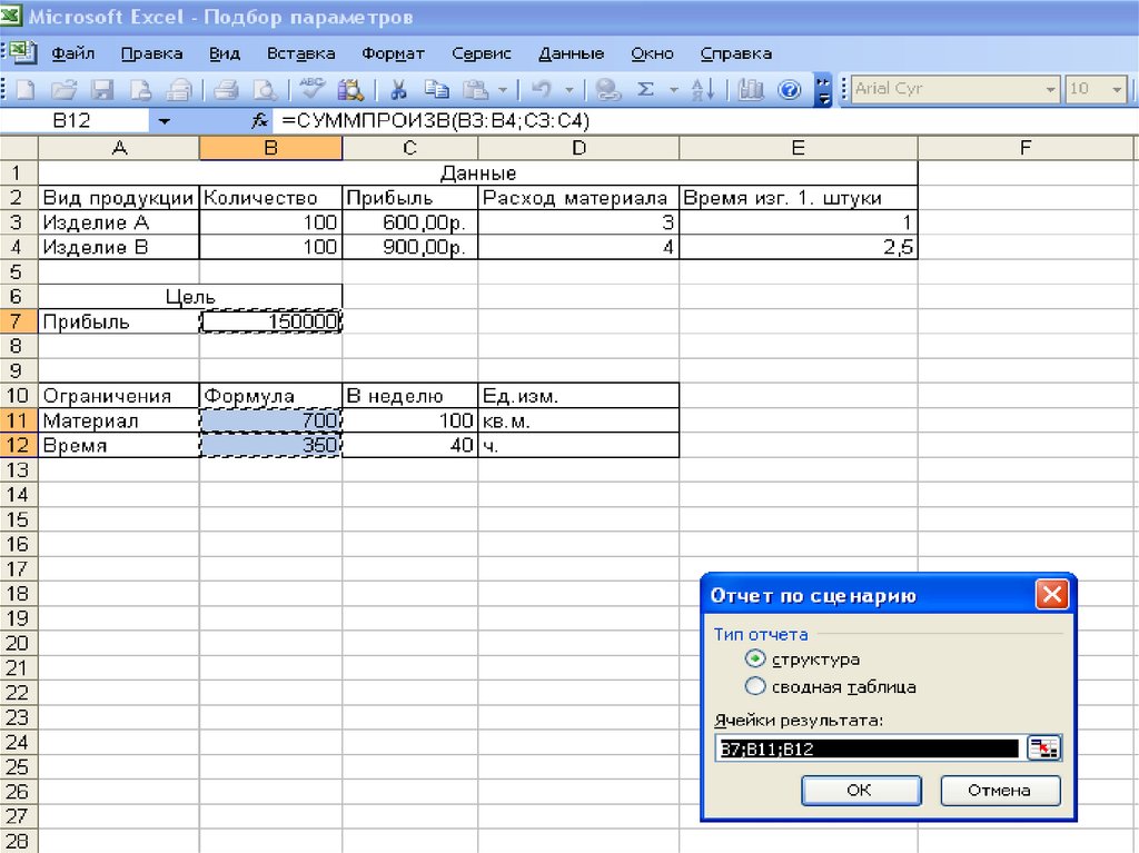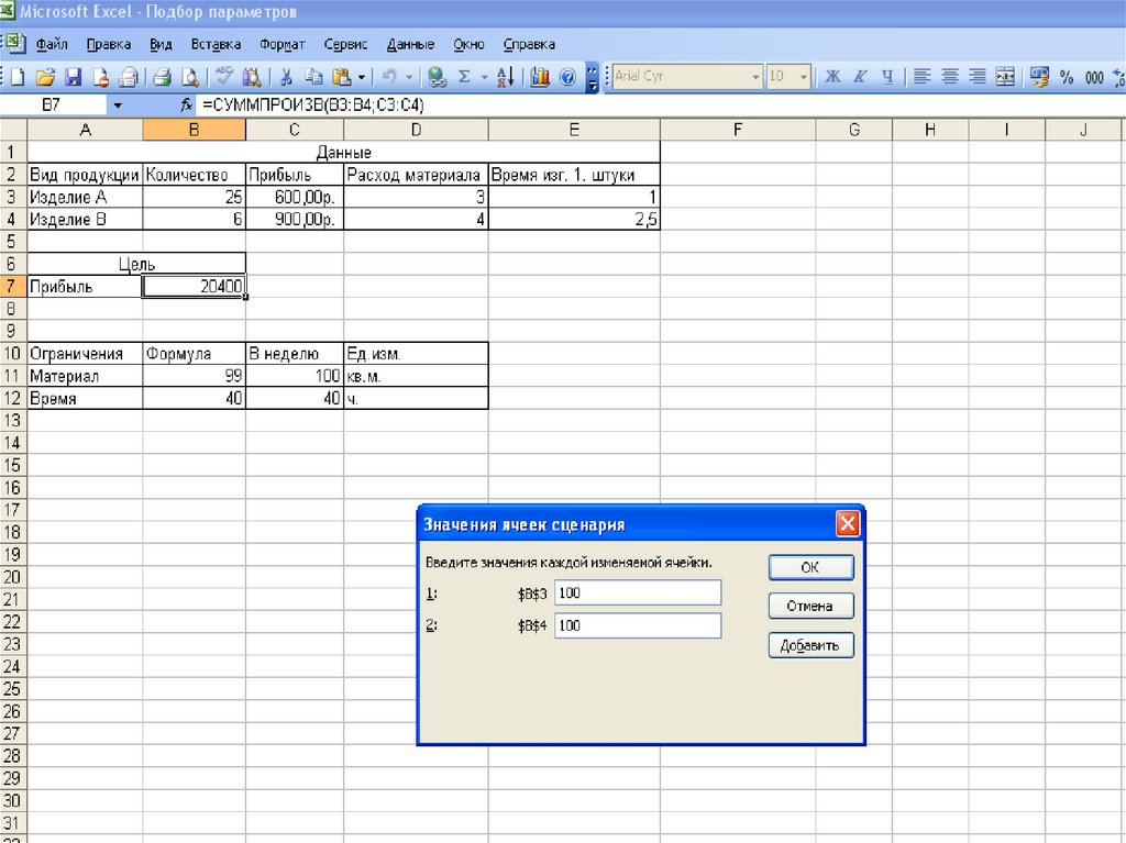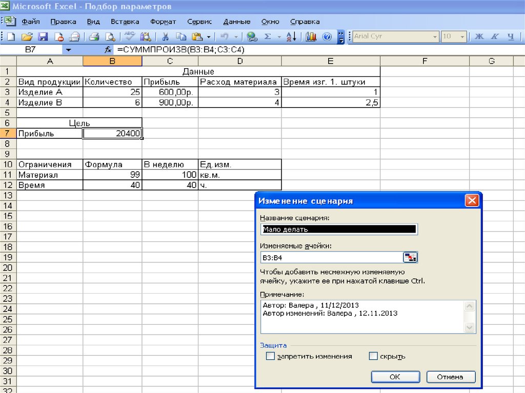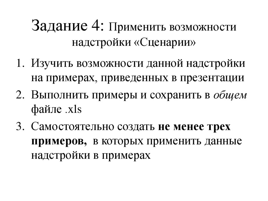 1. Задание 4: Применить возможности надстройки «Сценарии»