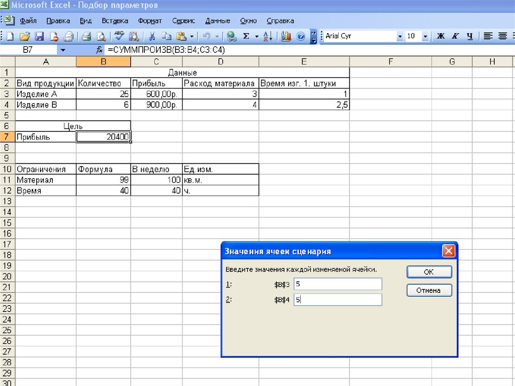 • Изменяемые ячейки в модели – это ячейки, содержащие