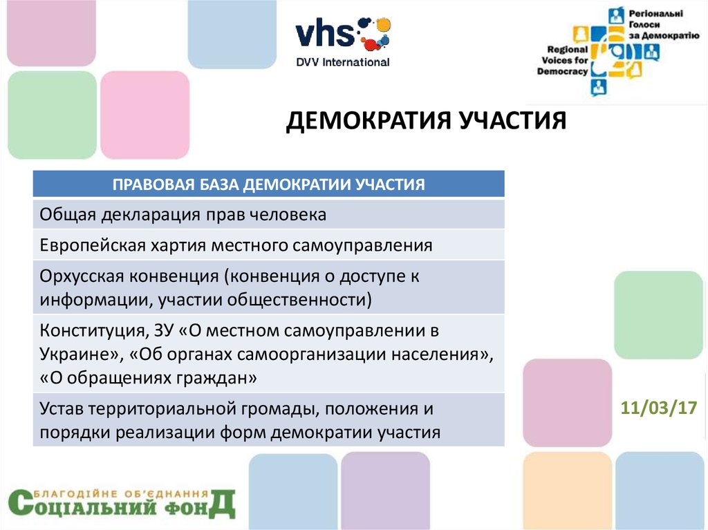 ДЕМОКРАТИЯ УЧАСТИЯПРАВОВАЯ БАЗА ДЕМОКРАТИИ УЧАСТИЯ