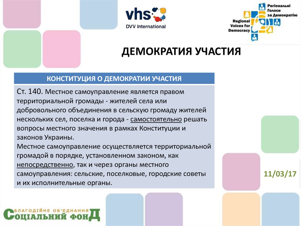 ДЕМОКРАТИЯ УЧАСТИЯКОНСТИТУЦИЯ О ДЕМОКРАТИИ УЧАСТИЯ