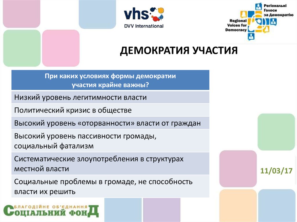 ДЕМОКРАТИЯ УЧАСТИЯПРИ КАКИХ УСЛОВИЯХ ФОРМЫ
