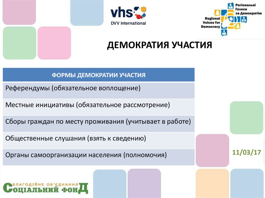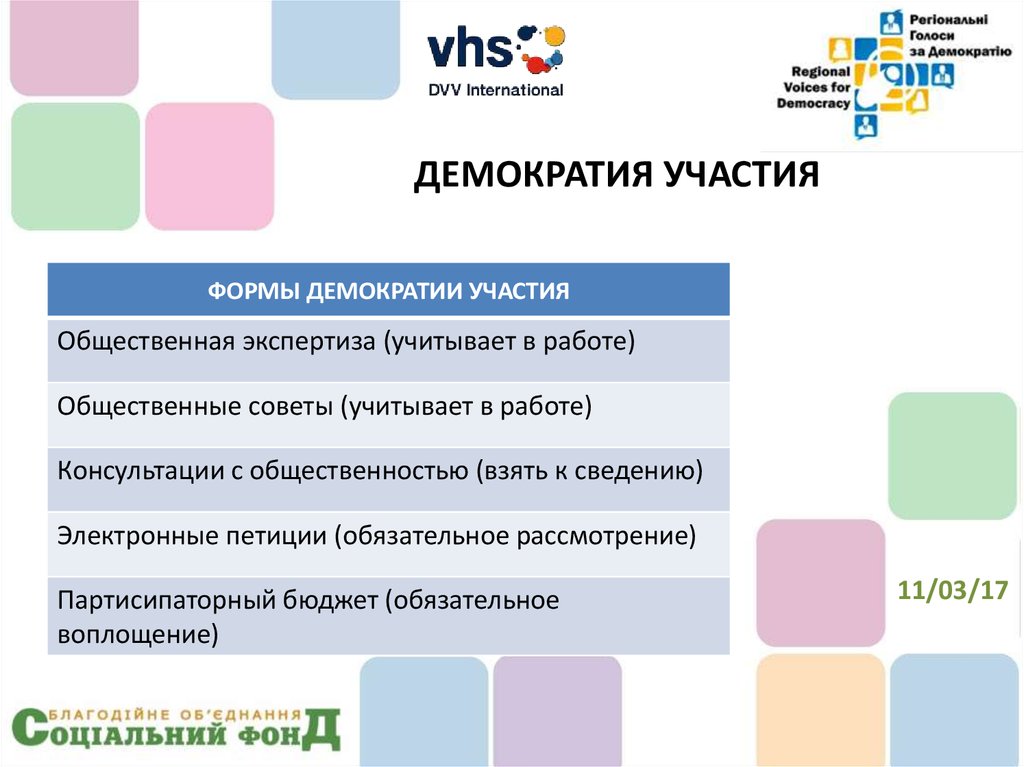 ДЕМОКРАТИЯ УЧАСТИЯФОРМЫ ДЕМОКРАТИИ УЧАСТИЯ
