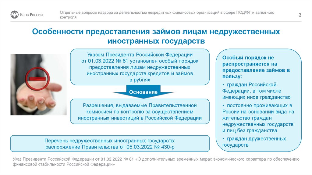 Указ Президента Российской Федерации от 01.03.2022 № 81 «О дополнительных временных мерах экономического характера по обеспечению