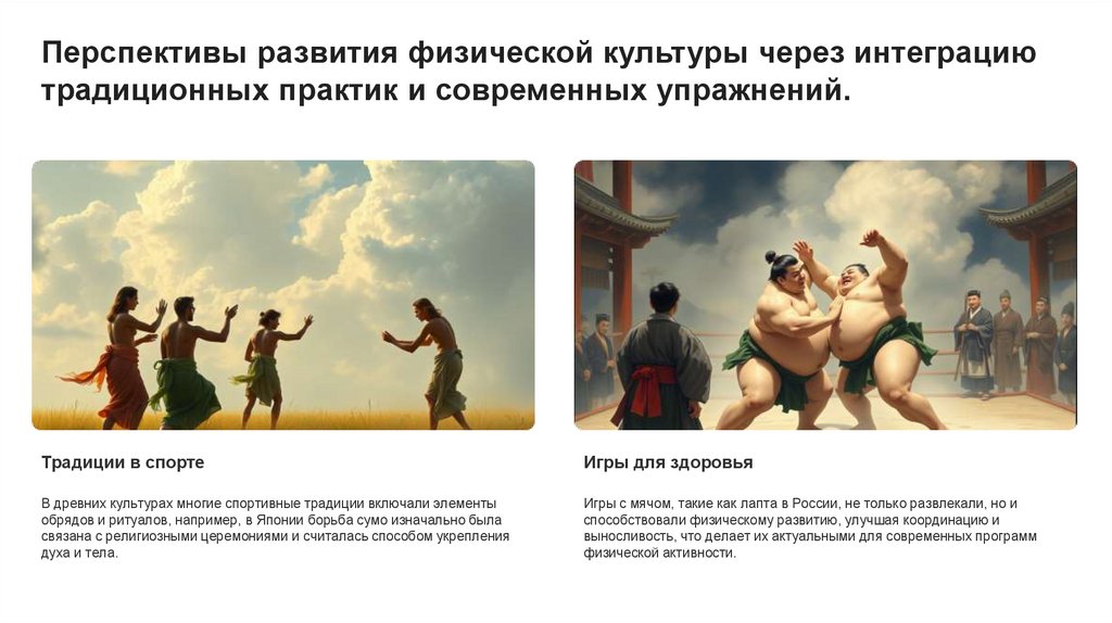 Перспективы развития физической культуры через интеграциютрадиционных практик и современных упражнений.