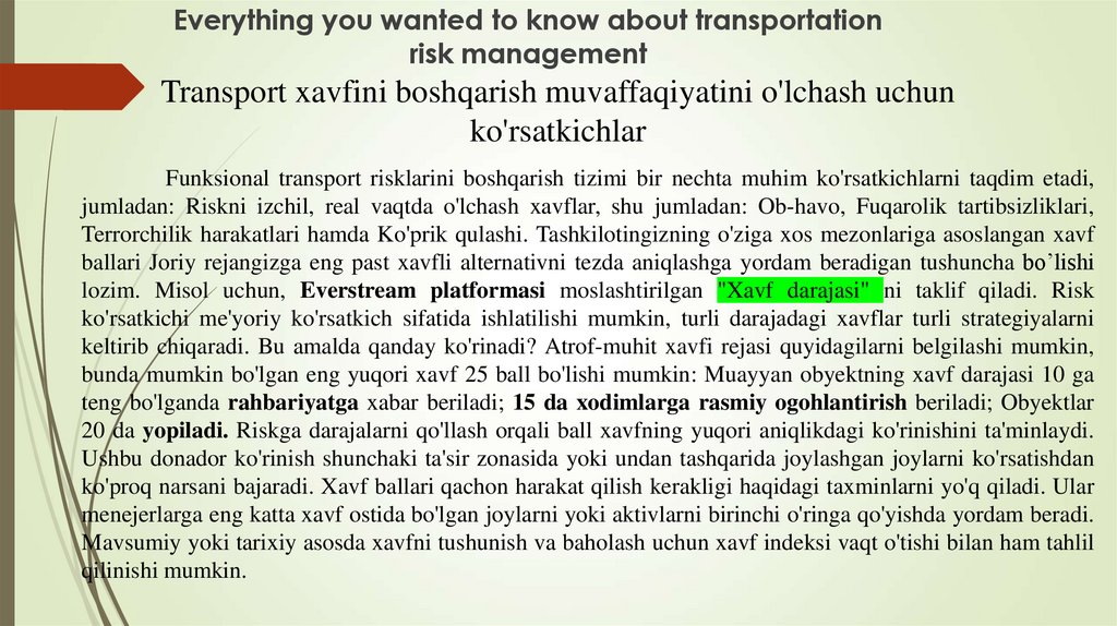 4. Transport xavfini kompleks baholashni o'tkazish bo'yicha eng yaxshi