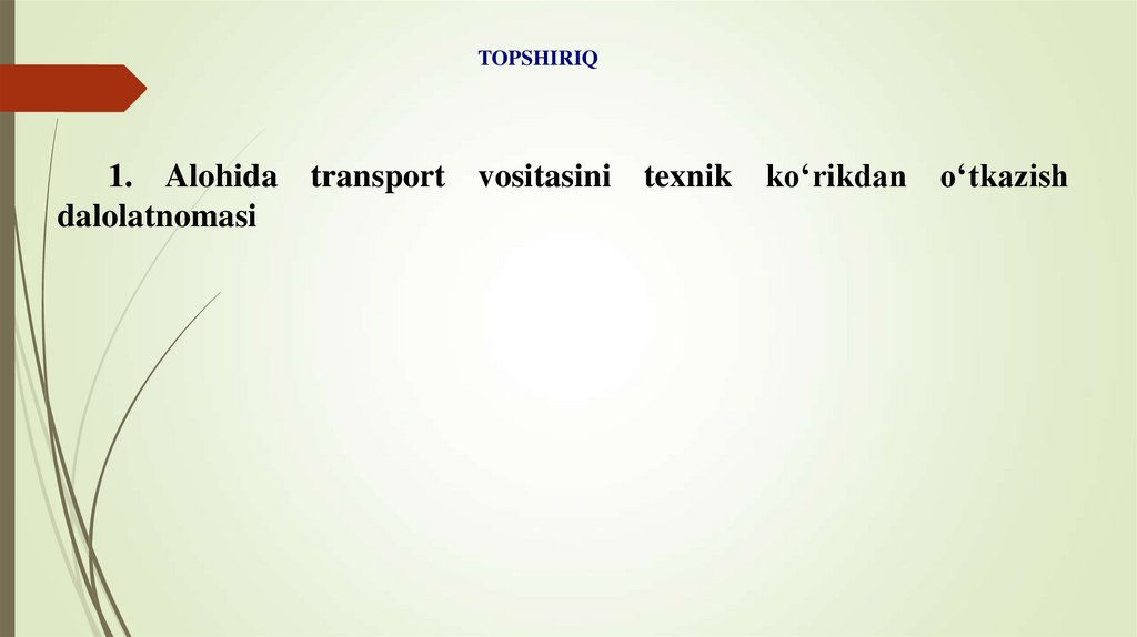 TOPSHIRIQ1. Alohida transport vositasini texnik ko‘rikdan o‘tkazish