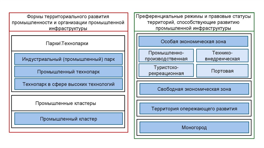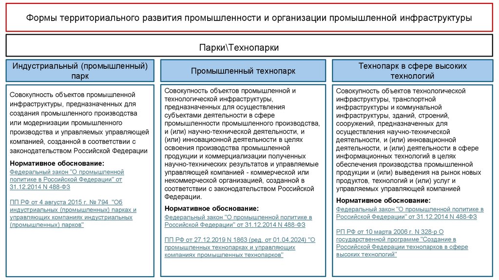 Формы территориального развития промышленности и организации промышленной инфраструктурыПарки\Технопарки