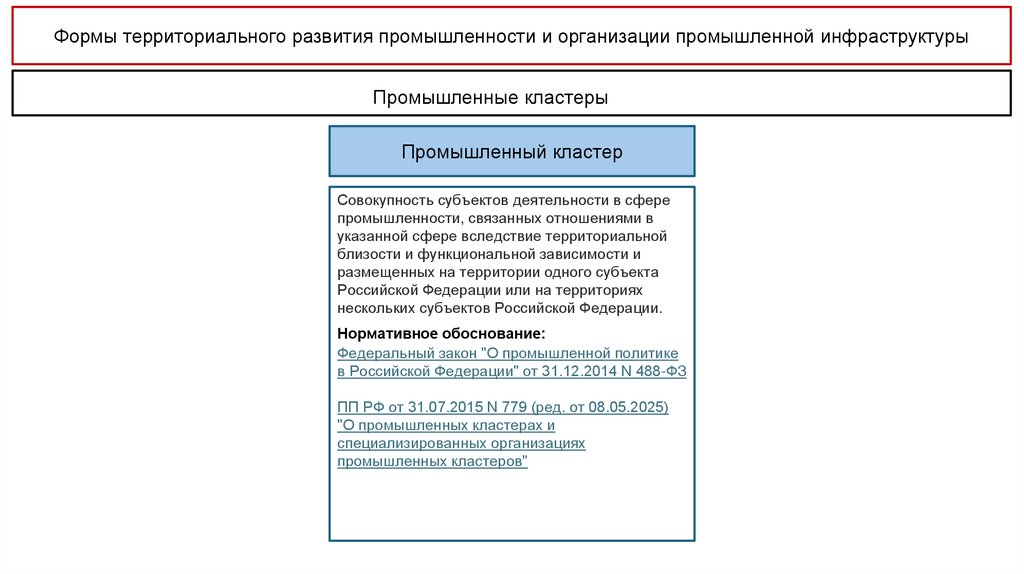 Формы территориального развития промышленности и организации промышленной инфраструктурыПромышленные кластеры