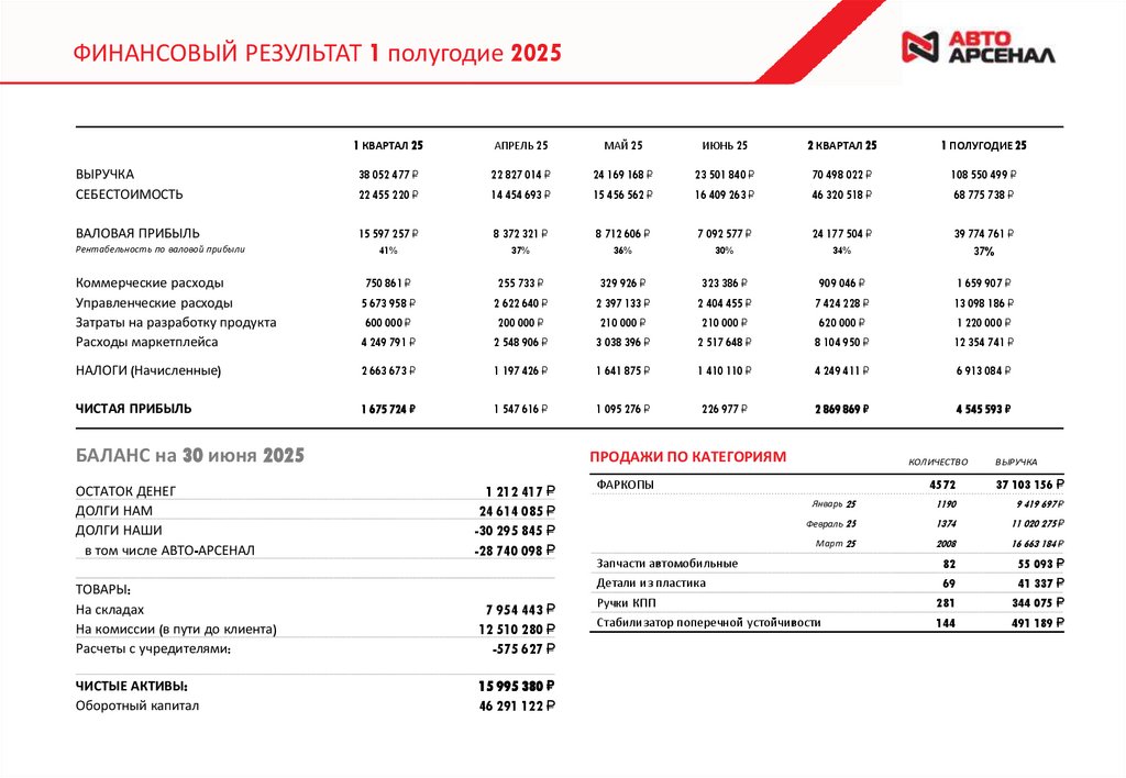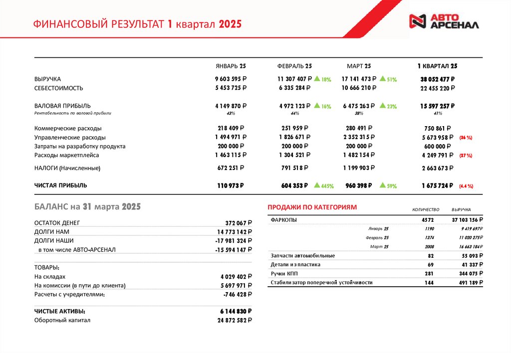ФИНАНСОВЫЙ РЕЗУЛЬТАТ 1 квартал 2025ЯНВАРЬ 25