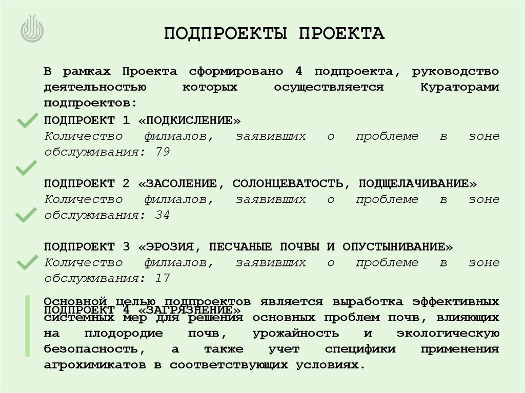 ПОДПРОЕКТ 2 «ЗАСОЛЕНИЕ, СОЛОНЦЕВАТОСТЬ, ПОДЩЕЛАЧИВАНИЕ»