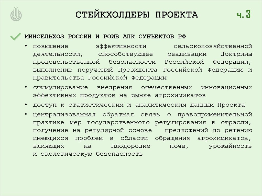 1. ПРОЕКТ «АГРОХИМИКАТЫ» ФГБУ «РОСАГРОХИМСЛУЖБА»