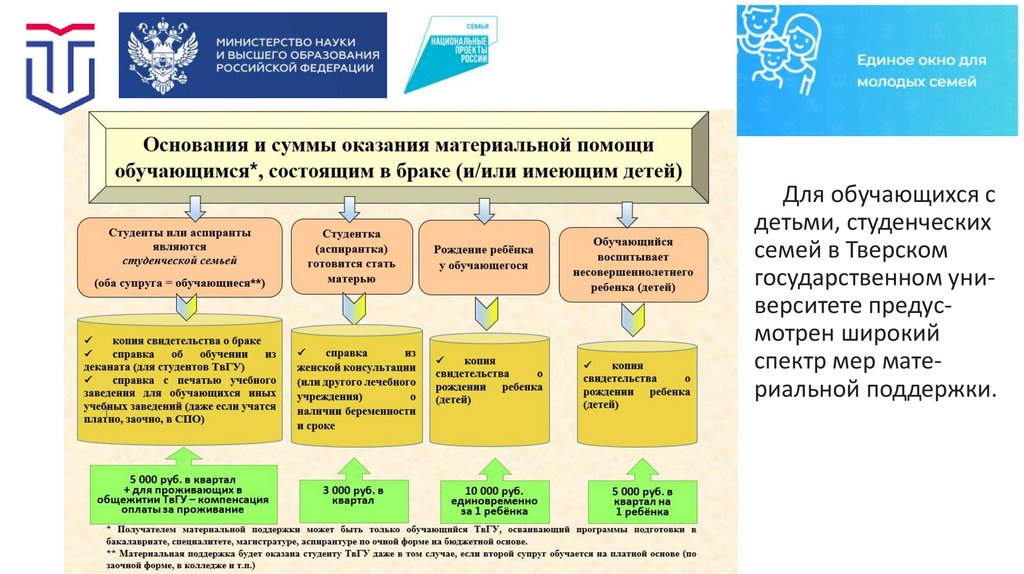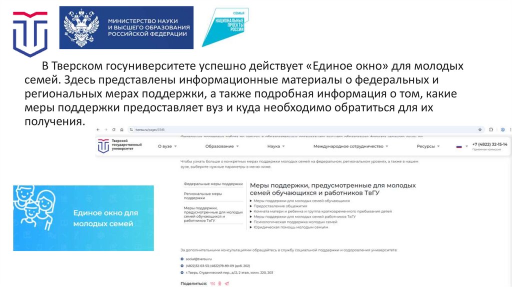 В Тверском госуниверситете успешно действует «Единое окно» для молодыхсемей. Здесь представлены информационные материалы о федеральных и