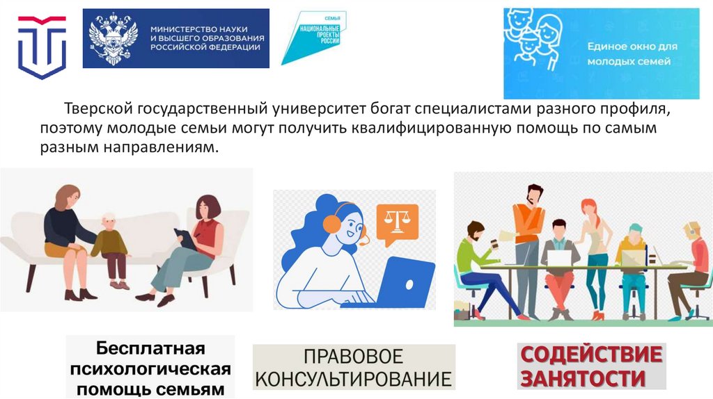Тверской государственный университет богат специалистами разного профиля,поэтому молодые семьи могут получить квалифицированную помощь по самым