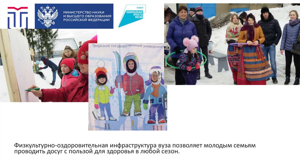Физкультурно-оздоровительная инфраструктура вуза позволяет молодым семьямпроводить досуг с пользой для здоровья в любой сезон.