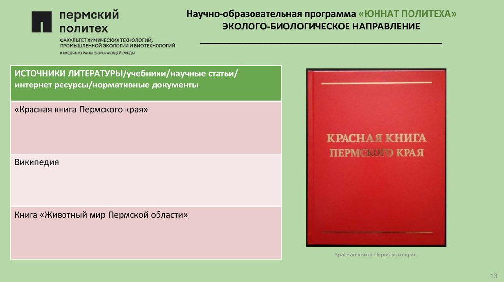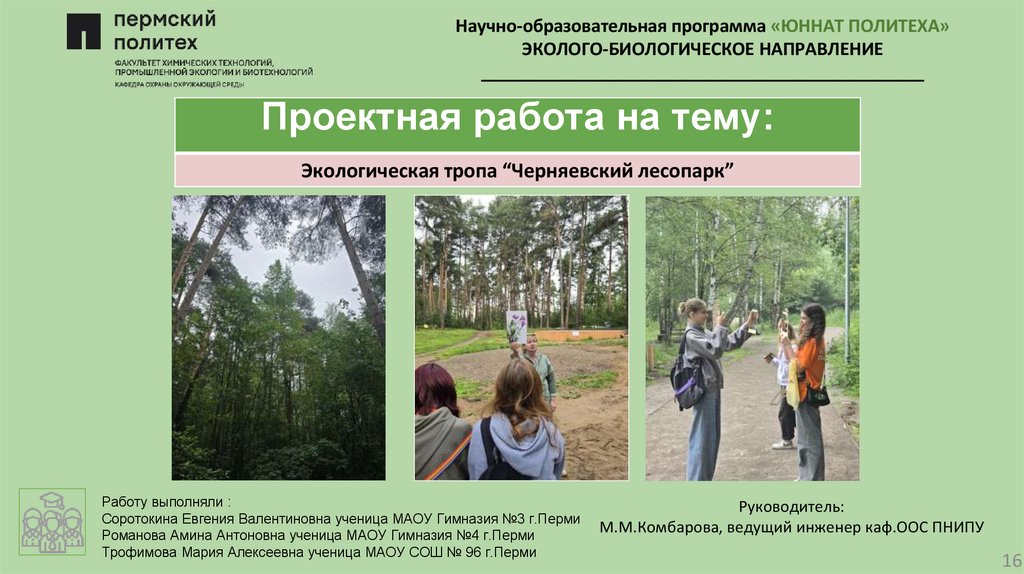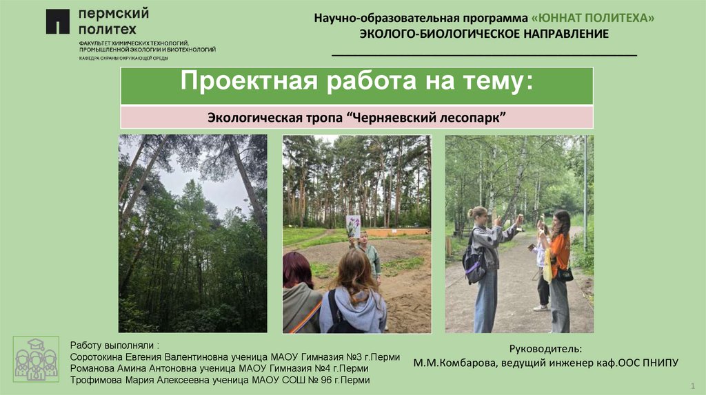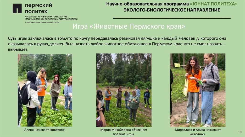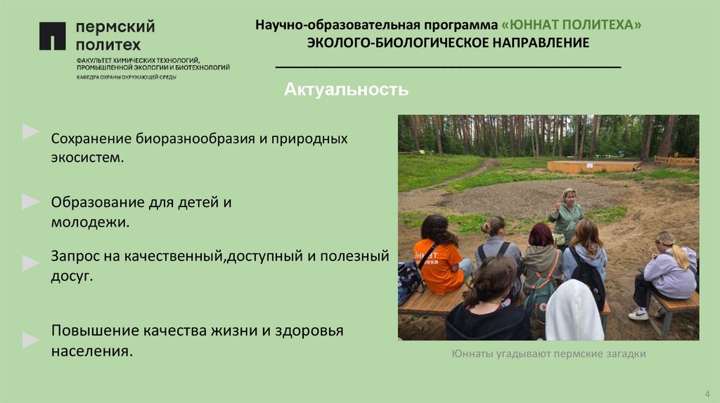 Научно-образовательная программа «ЮННАТ ПОЛИТЕХА»ЭКОЛОГО-БИОЛОГИЧЕСКОЕ НАПРАВЛЕНИЕ