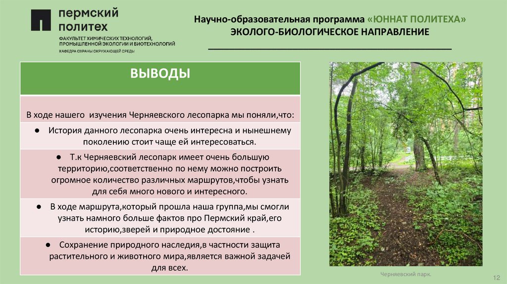 В ходе нашего изучения Черняевского лесопарка мы поняли,что: