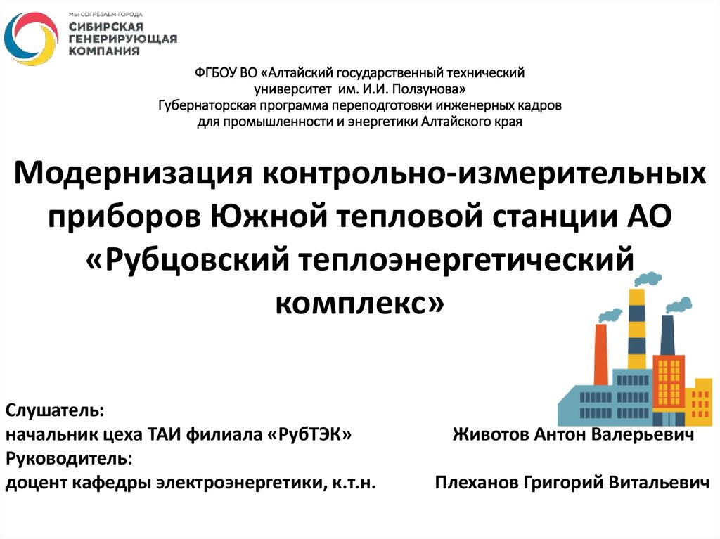 2. Цель работы – Модернизация контрольно-измерительных приборов для улучшение надежности и эффективности работы Южной тепловой