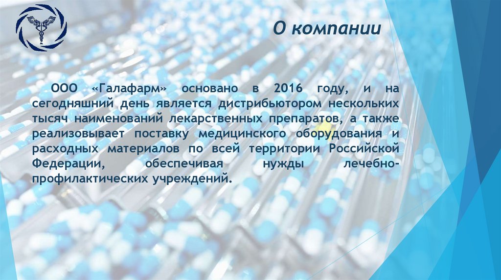 ООО «Галафарм» основано в 2016 году, и насегодняшний день является дистрибьютором нескольких