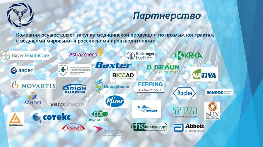 Компания осуществляет закупку медицинской продукции по прямым контрактамс ведущими мировыми и российскими производителями: