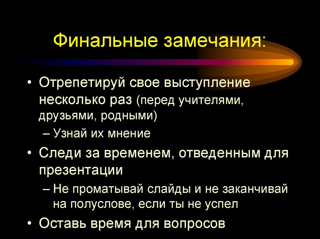 • Отрепетируй свое выступлениенесколько раз (перед учителями,