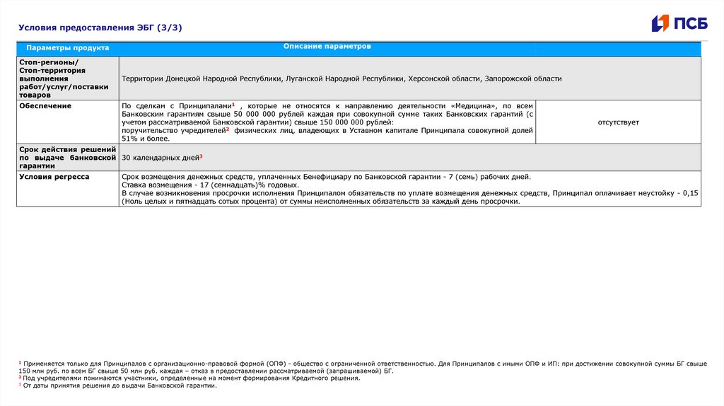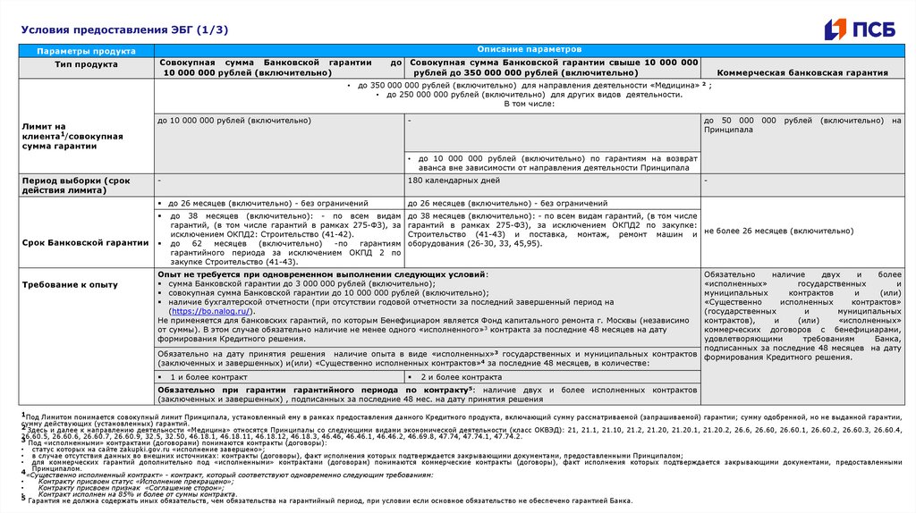 1Под Лимитом понимается совокупный лимит Принципала, установленный ему в рамках предоставления данного Кредитного продукта, включающий сумму рассматриваемой (запрашиваемой) гарантии; сумму одобренной, но не выданной гарантии,
