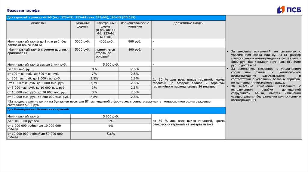комиссионного вознаграждения составляет 5000 руб. без доставки оригинала БГ, 5000