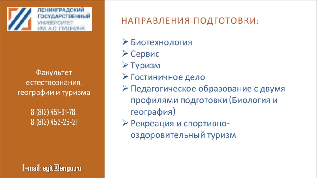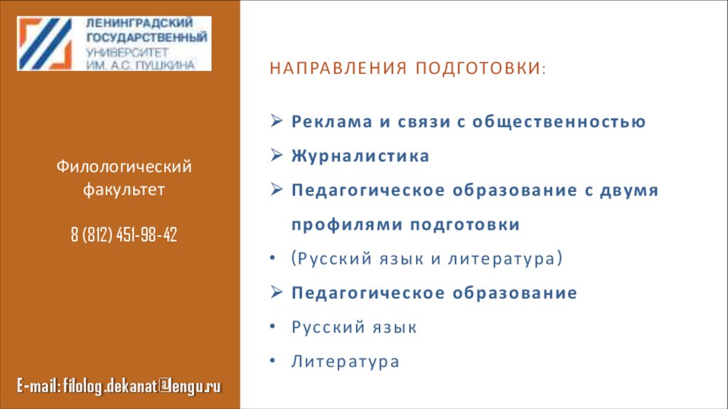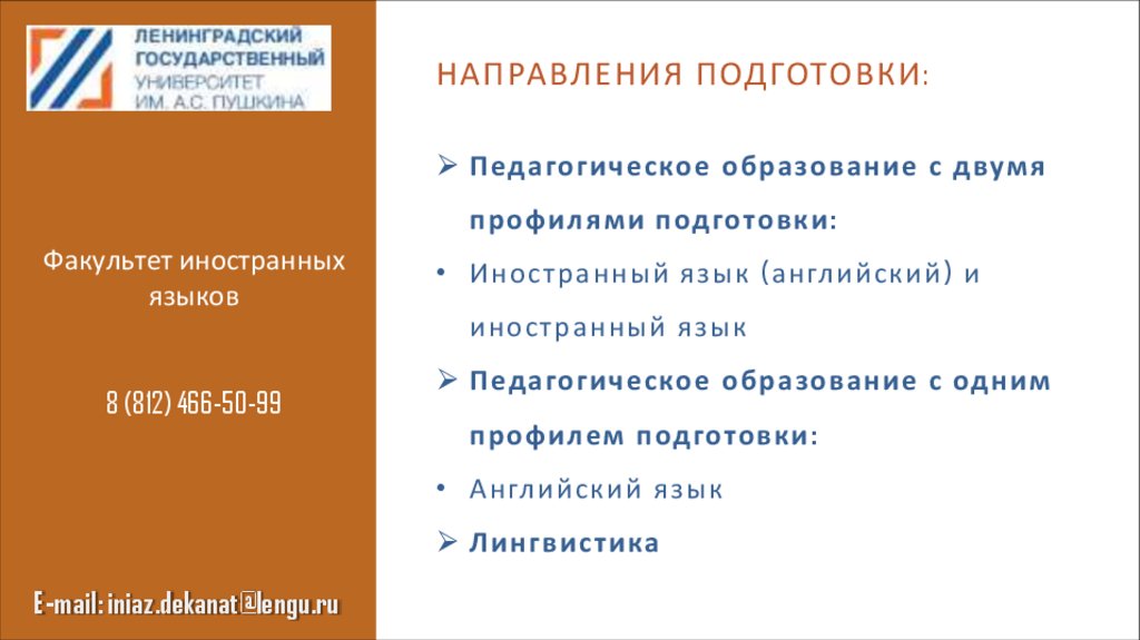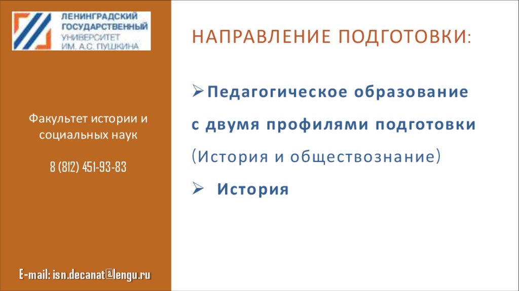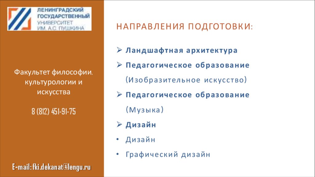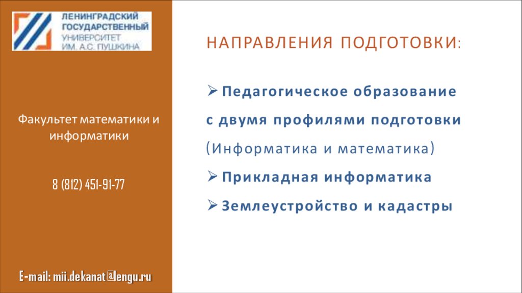 НАПРАВЛЕНИЯ ПОДГОТОВКИ:Факультет