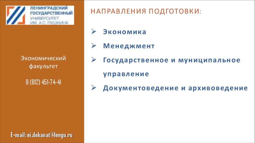 НАПРАВЛЕНИЯ ПОДГОТОВКИ:Экономика