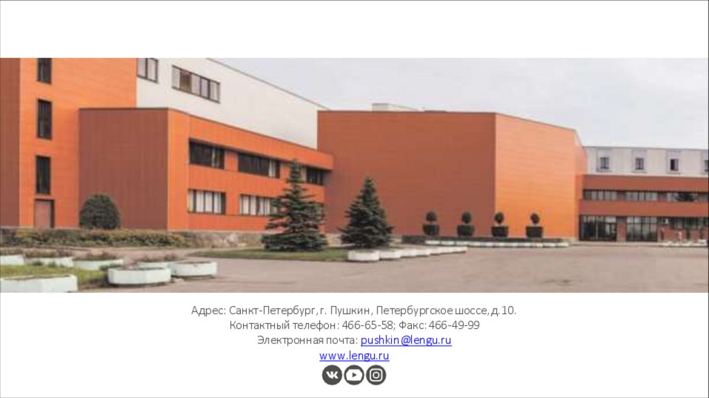 Адрес: Санкт-Петербург, г. Пушкин, Петербургское шоссе, д.10.Контактный телефон: 466-65-58; Факс: 466-49-99