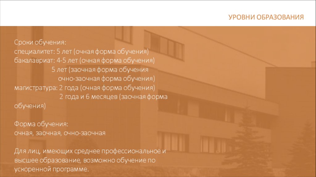 Сроки обучения:специалитет: 5 лет (очная форма обучения)