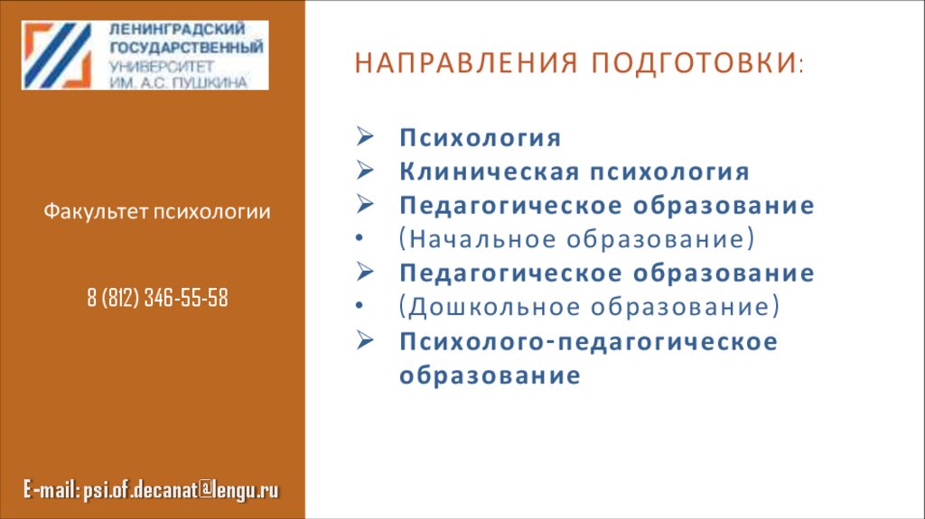 НАПРАВЛЕНИЯ ПОДГОТОВКИ:Факультет психологии
