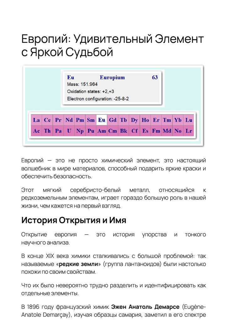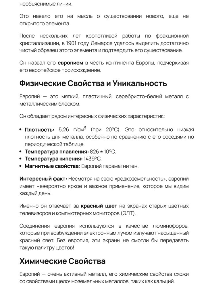 Интересный факт: Несмотря на свою «редкоземельность», европий