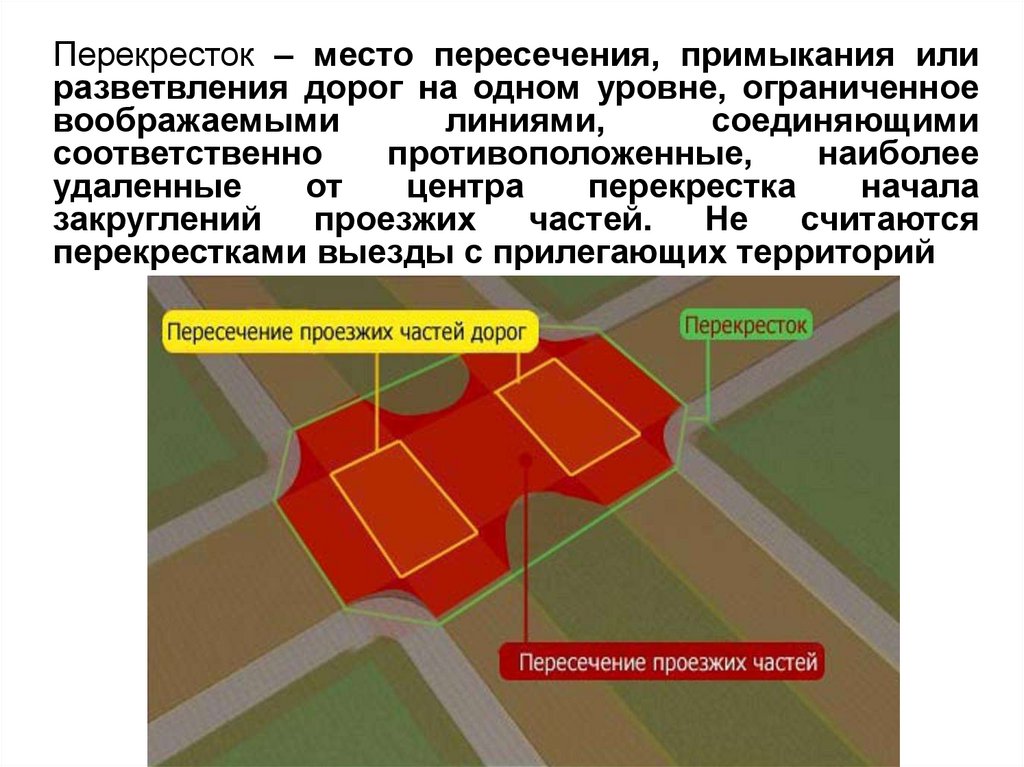 Перекресток – место пересечения, примыкания илиразветвления дорог на одном уровне, ограниченное