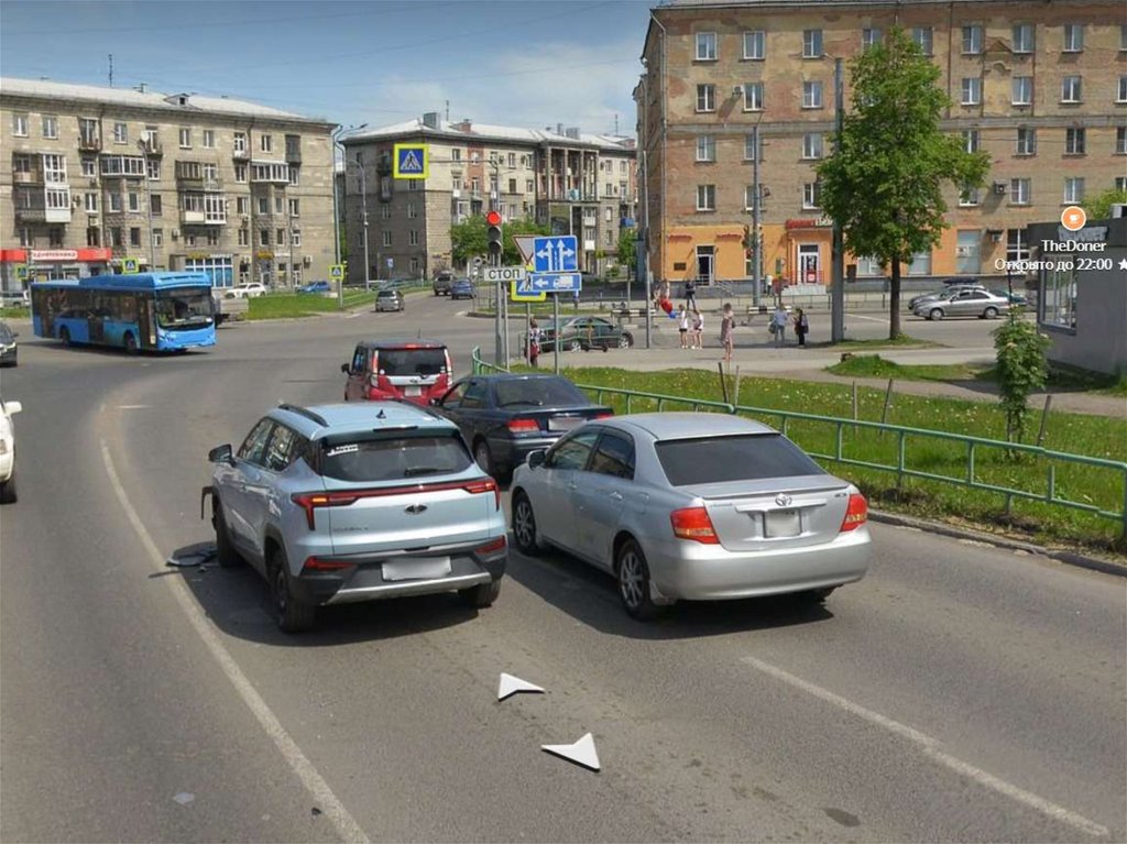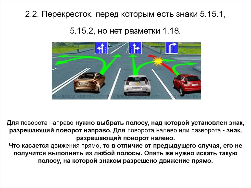 2.2. Перекресток, перед которым есть знаки 5.15.1,5.15.2, но нет разметки 1.18.