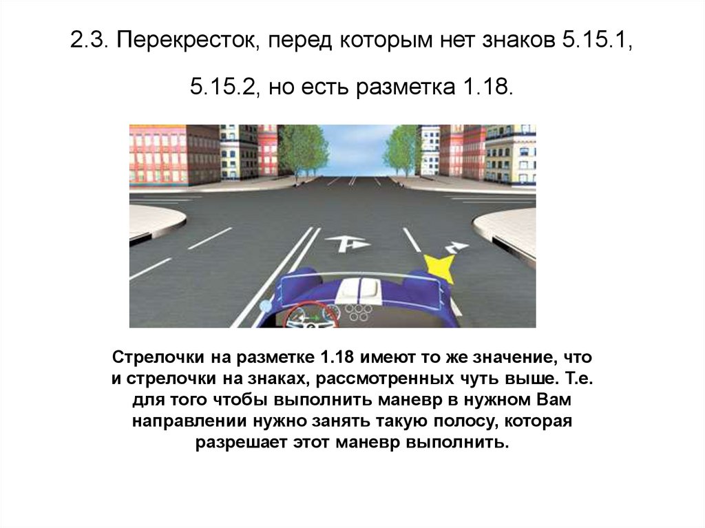 2.3. Перекресток, перед которым нет знаков 5.15.1,5.15.2, но есть разметка 1.18.