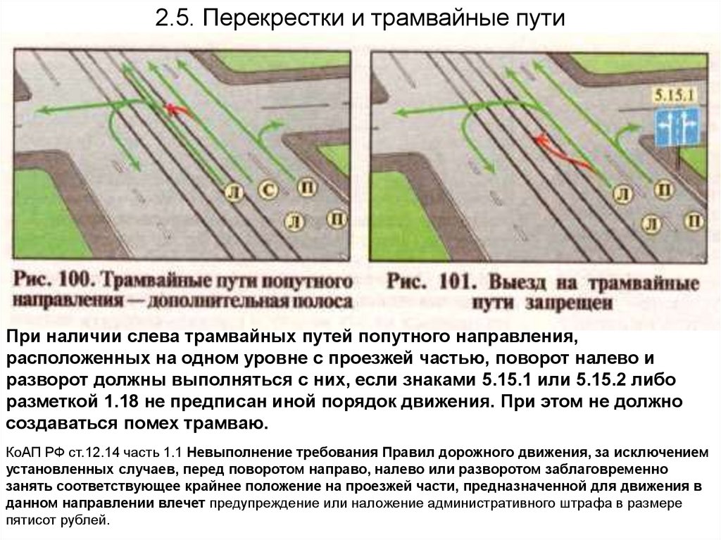 2.5. Перекрестки и трамвайные путиПри наличии слева трамвайных путей попутного направления,