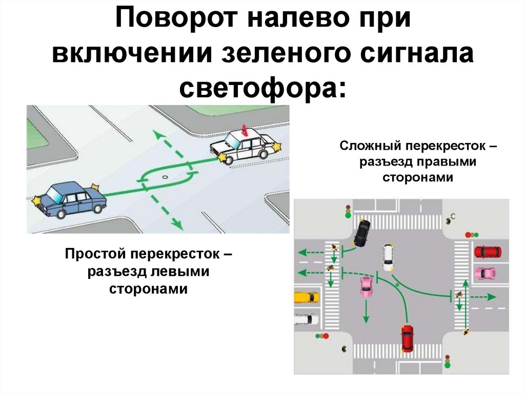 При повороте налево – нужно уступить