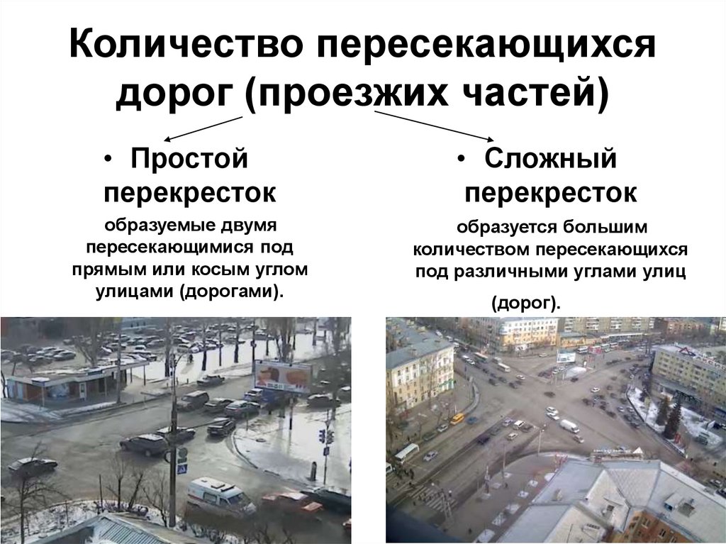 Количество пересекающихсядорог (проезжих частей)