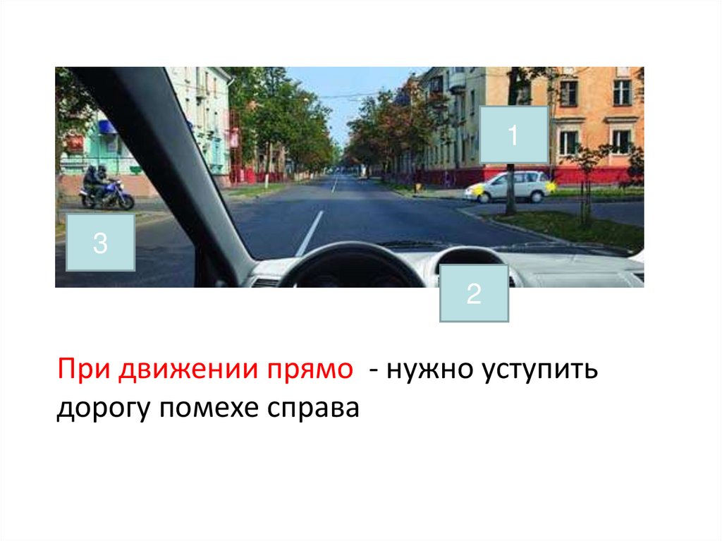 2. При движении прямо - нужно уступить дорогу помехе