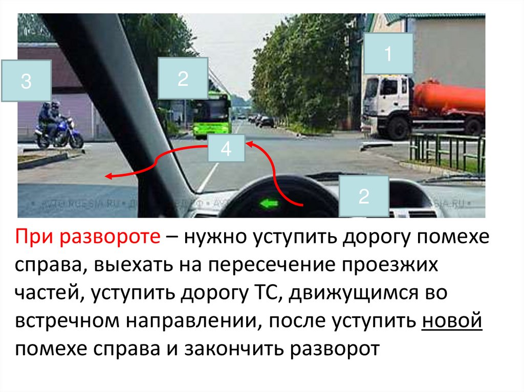 При развороте – нужно уступить дорогу помехе